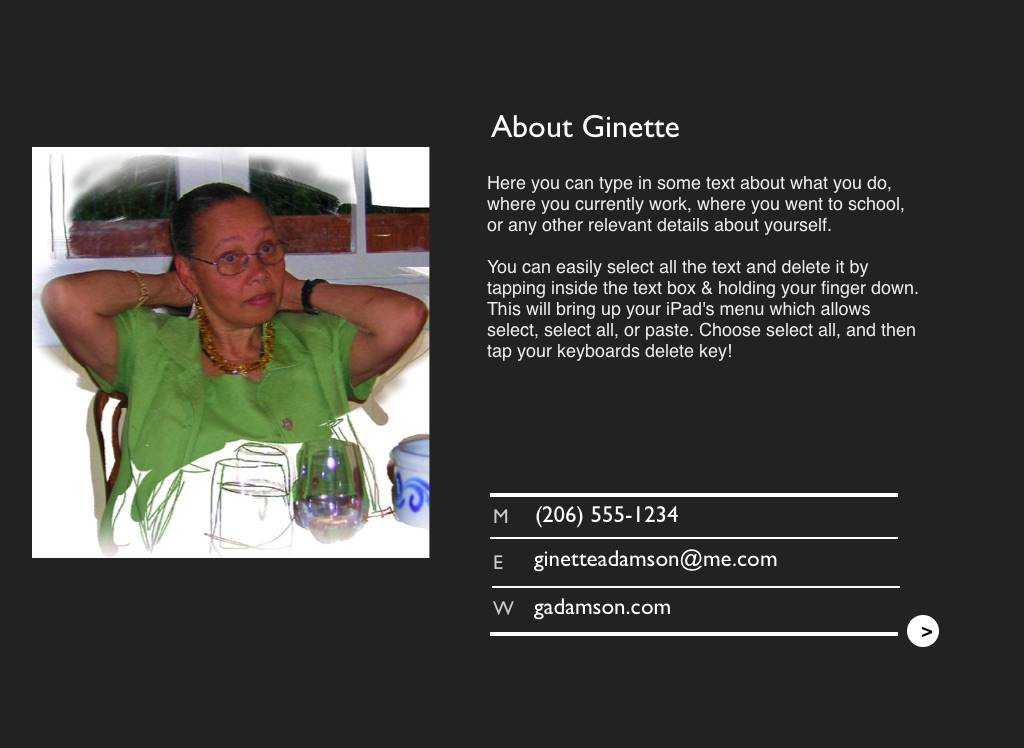 Ginette Adamson, artist, painter. Ginette’s Gallery of “abstractions suggestives.”