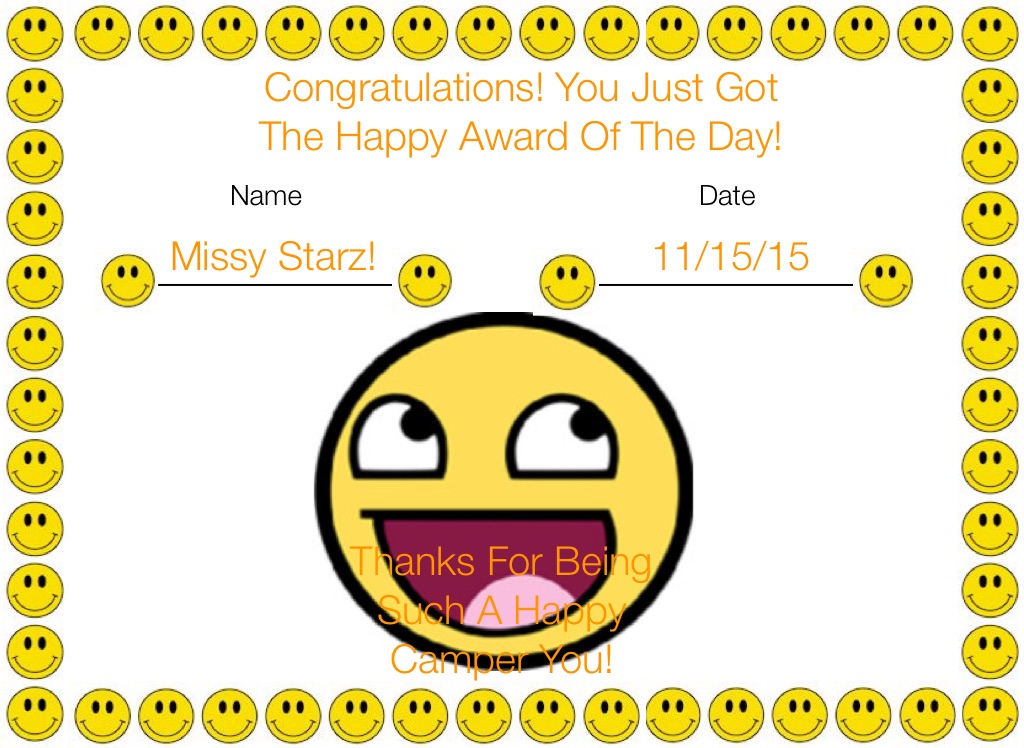 here you go! part 2! i will send out a happy face award to anyone that likes and comments a happy face and is nice to me! Part 3 coming soon! TaTa for now!